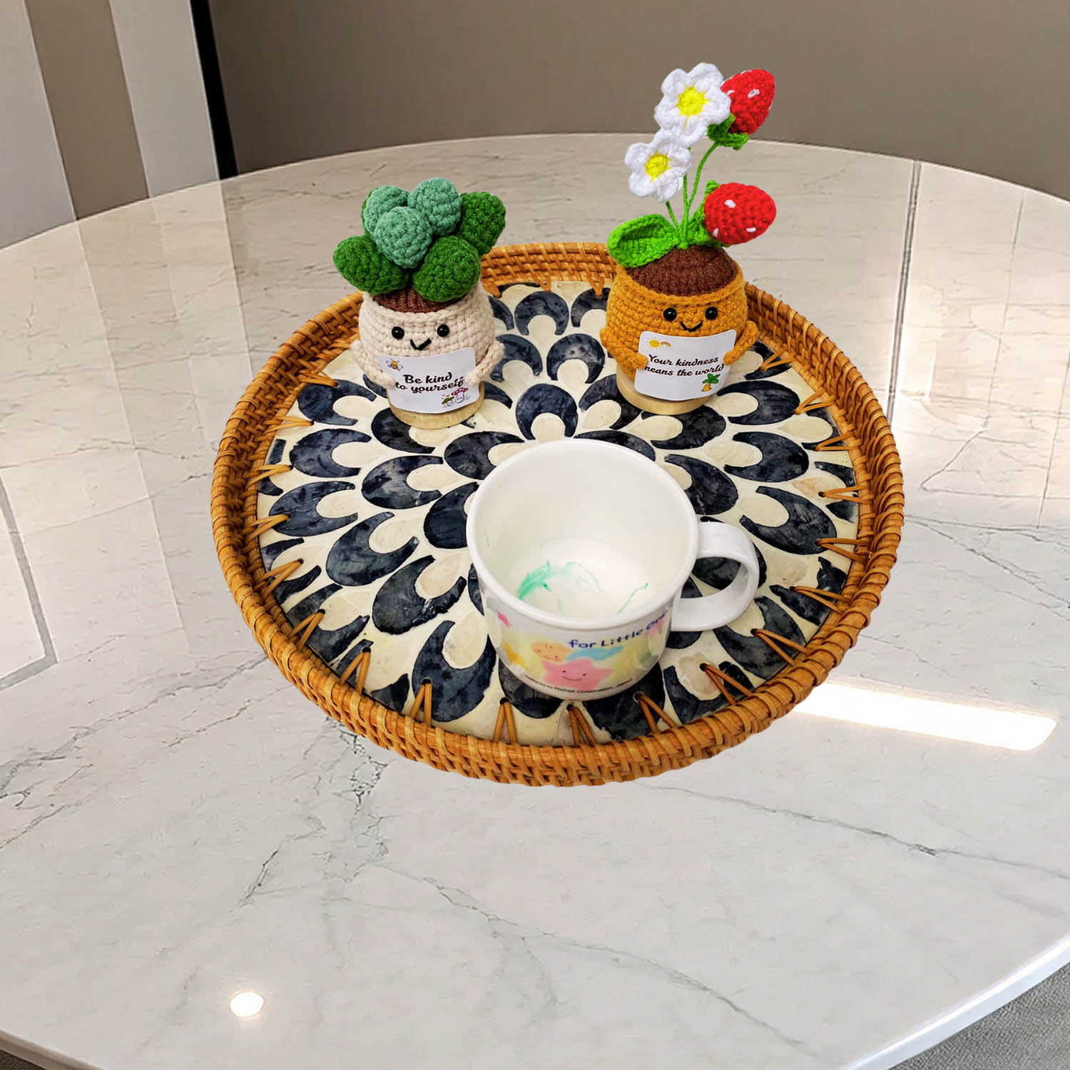 🍃 [What's included] The package has 1 rattan tray inlay with pearls. The tray can be used as bathroom, cafe trays, fruit trays, DIY trays, home decor to store bread, snacks, drinks,...