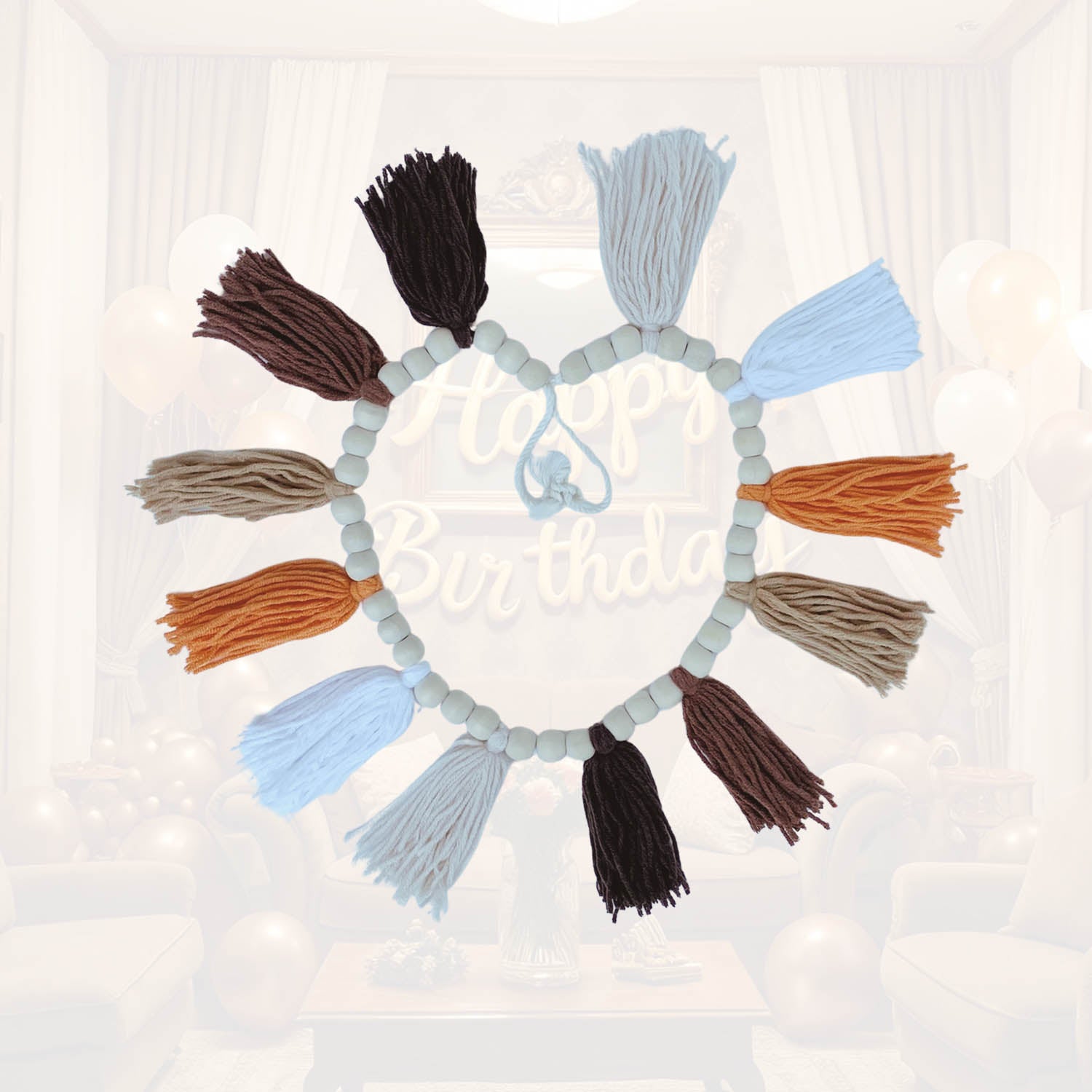 🍃 Tassel Banner for Special Occasions: Whether it's a birthday party, baby shower, or classroom event, this tassel banner garland makes a perfect decorative accent for celebrations, adding charm in soft blue and neutral tones.