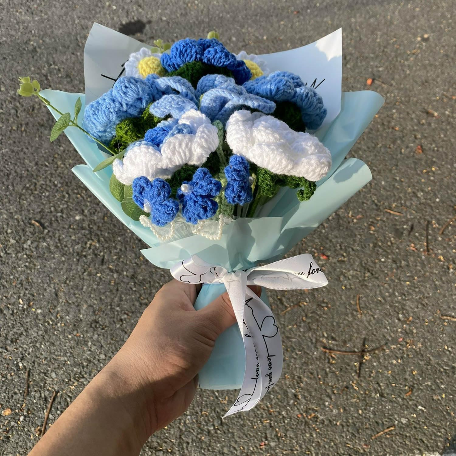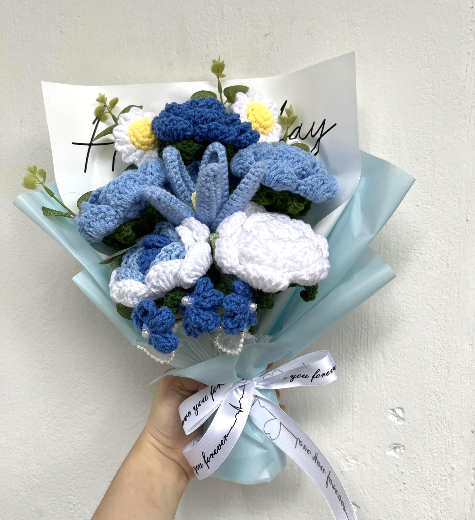 Completed Crochet Flowers Bouquet (Blue Rose)