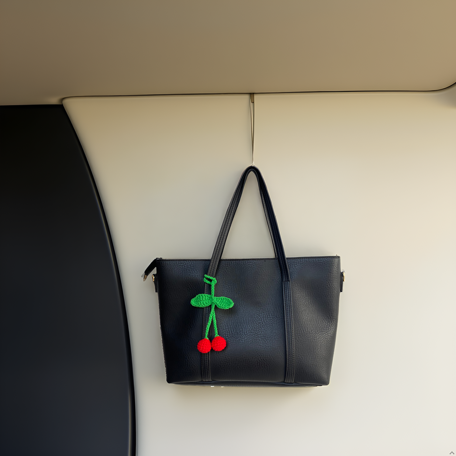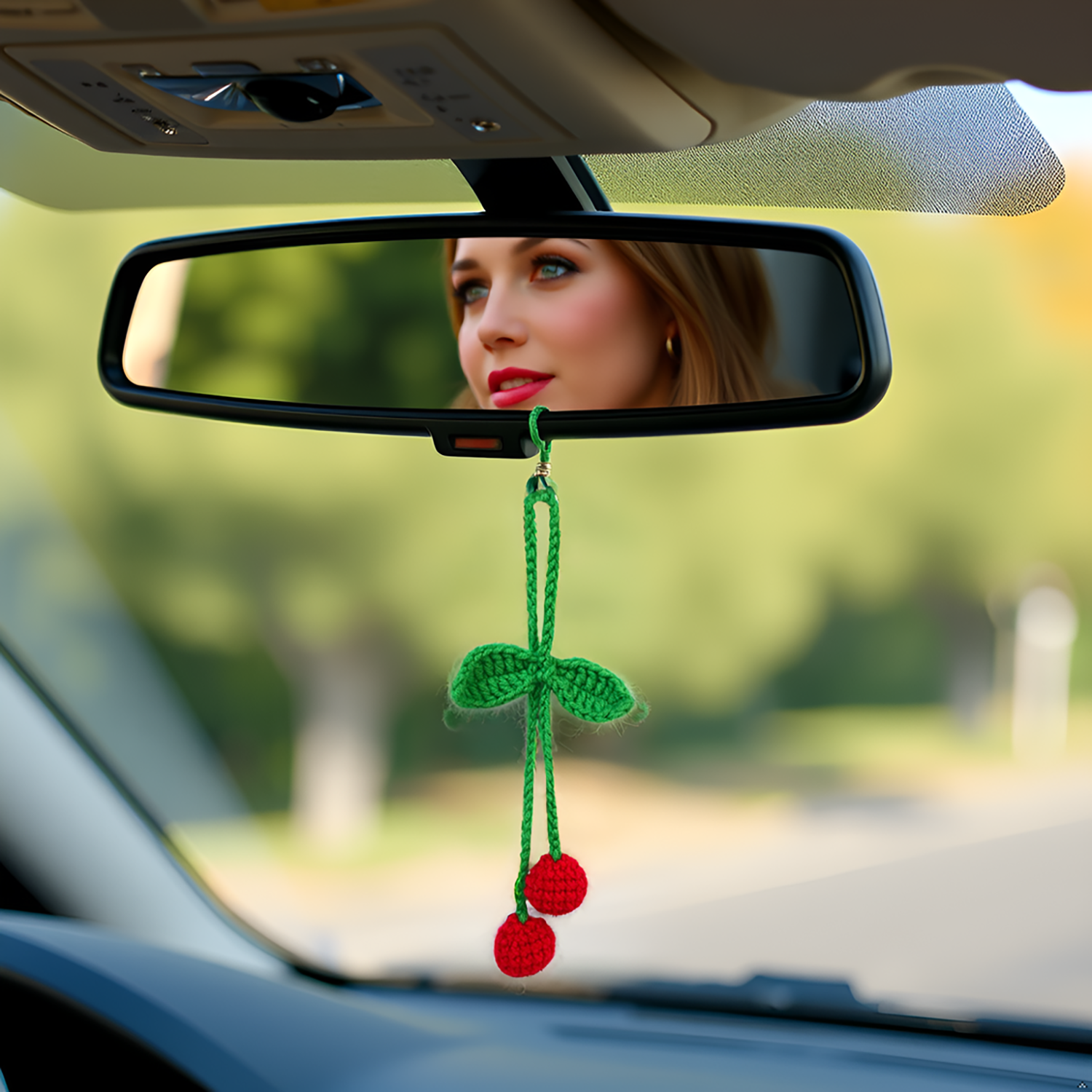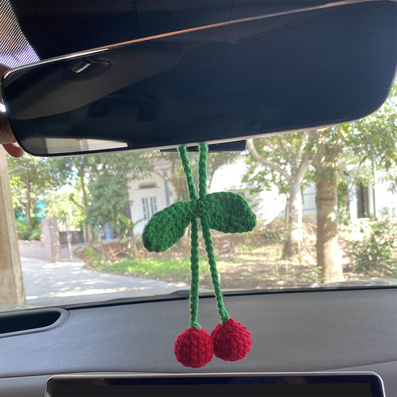 Crochet Car Accessories, Handmade Knitted Potted Plants Car (Red cherry)