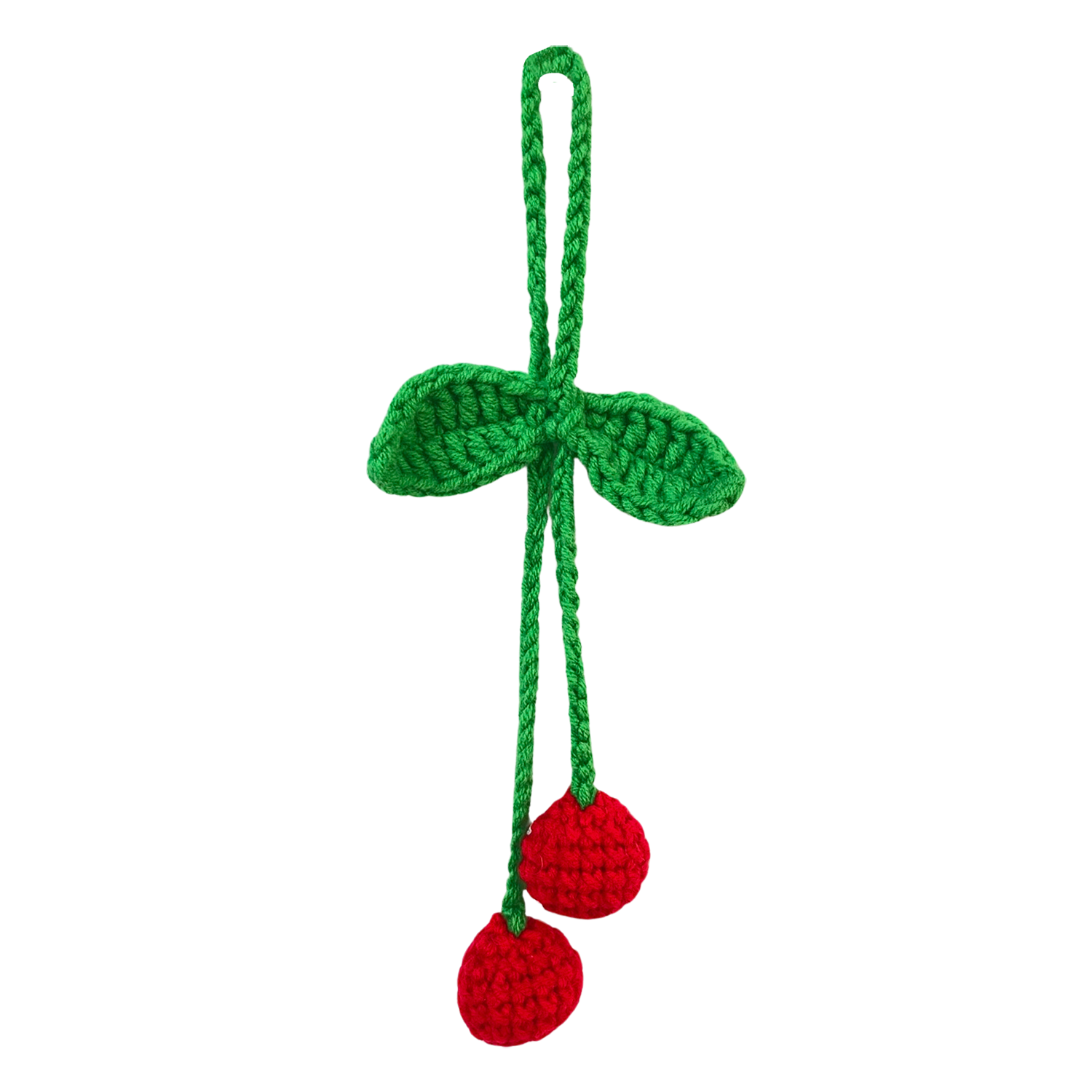 Crochet Car Accessories, Handmade Knitted Potted Plants Car, Crochet Plant for Rear View Mirror Car, Mini Plant Pots Hanging Basket, Hand-Woven Decoration (Red cherry)