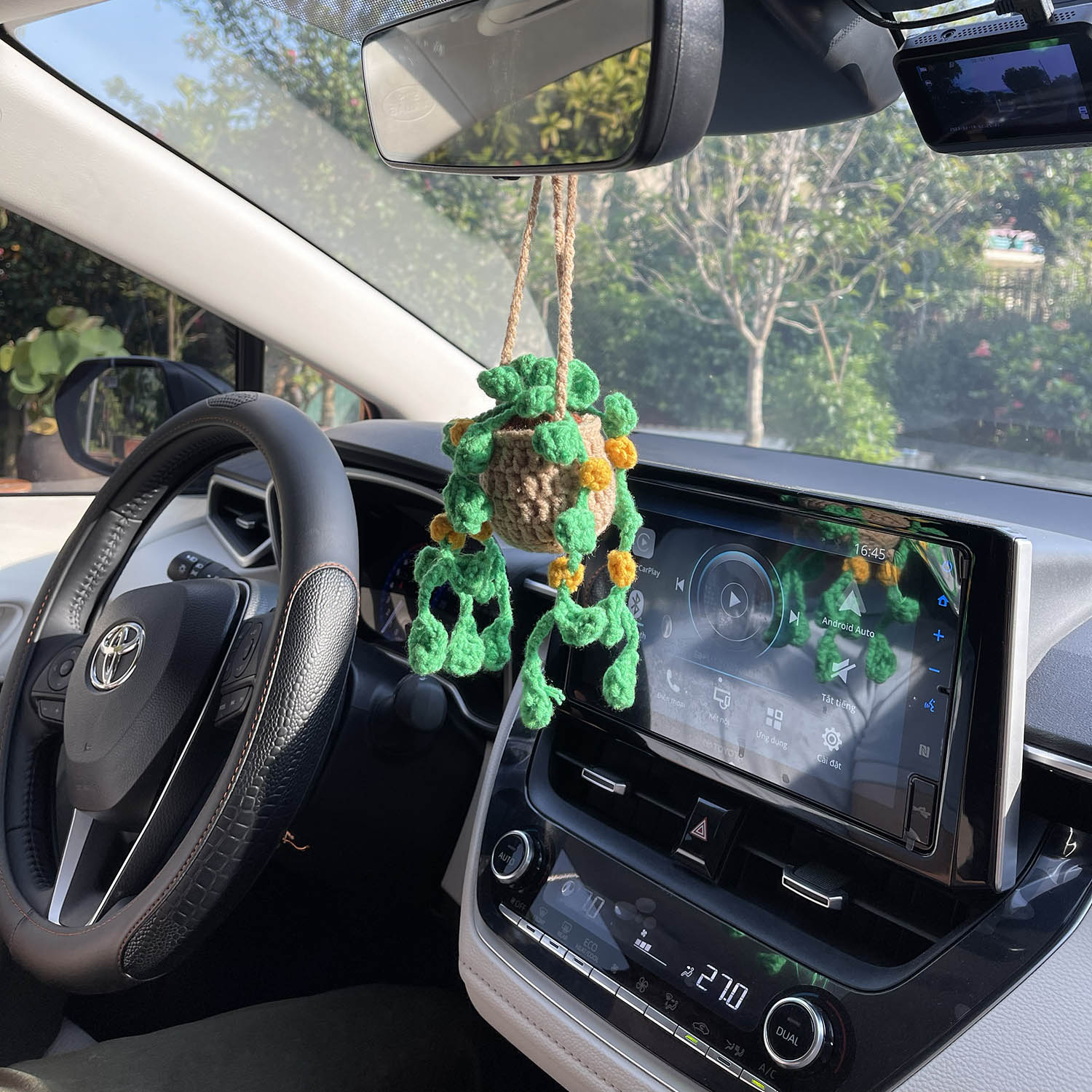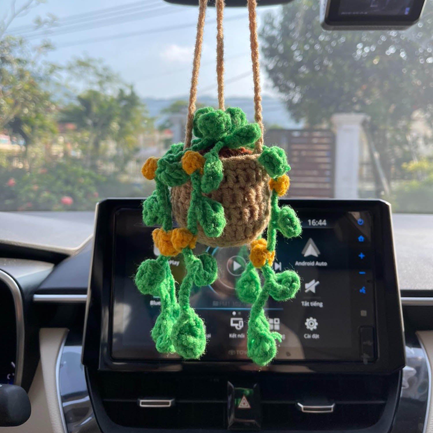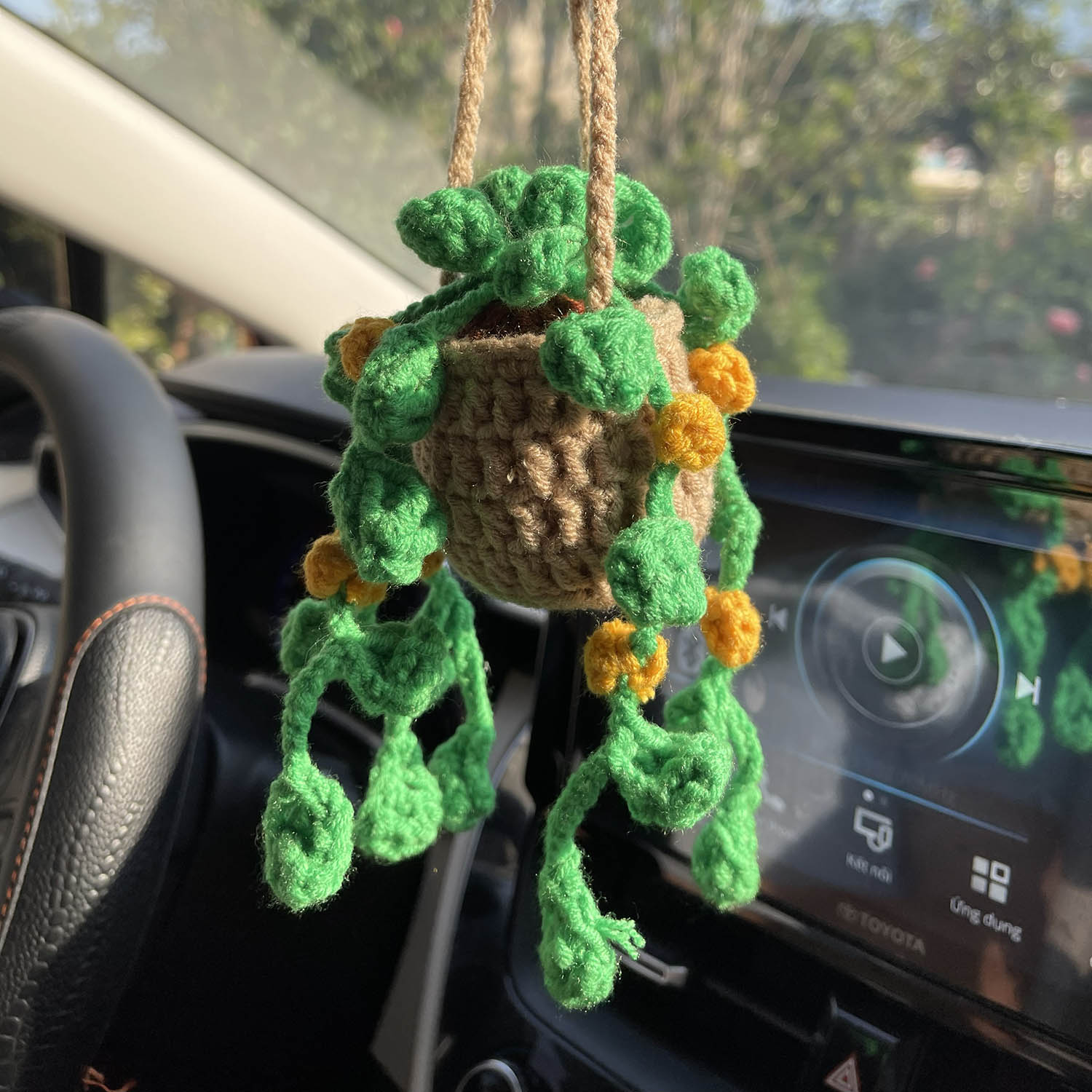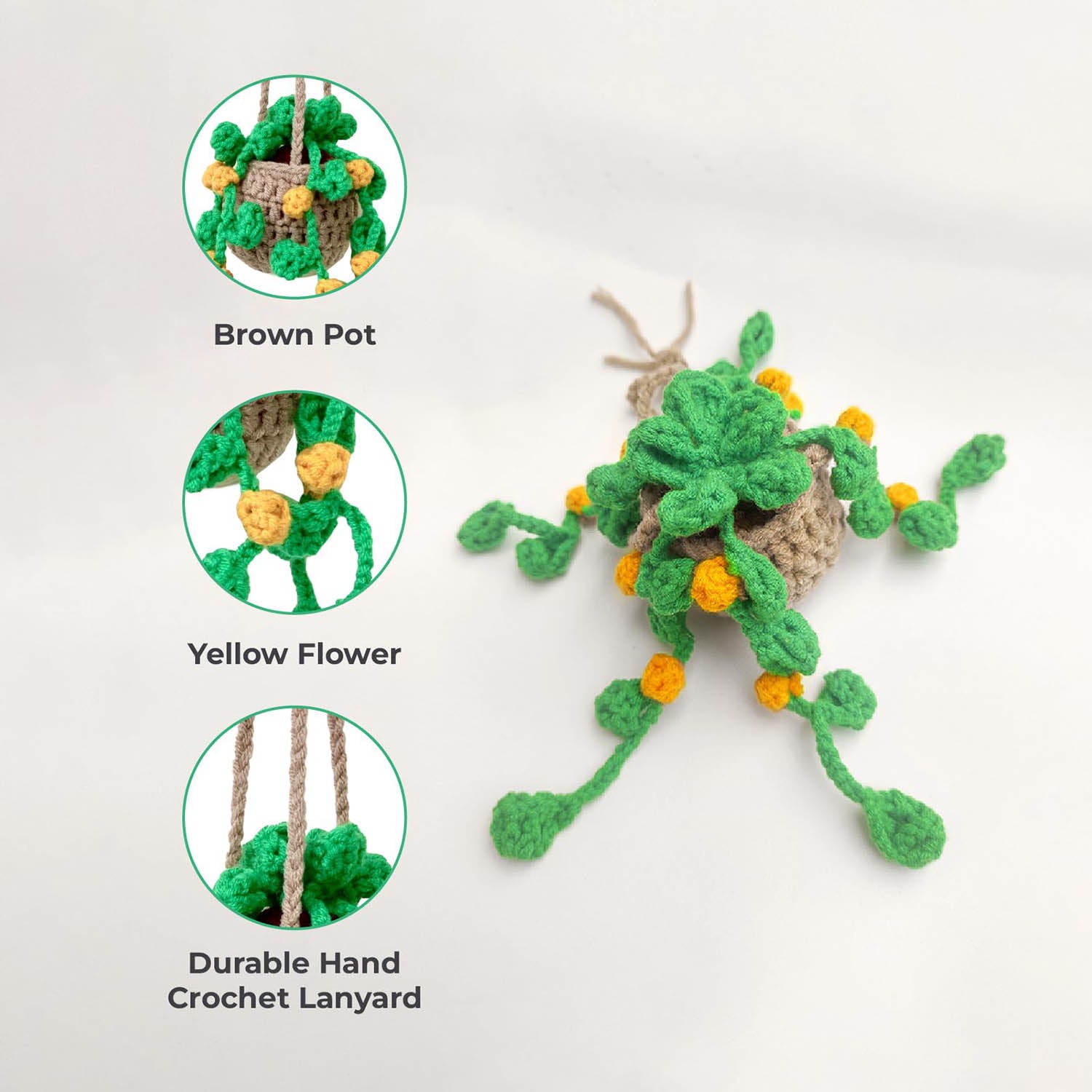 Crochet Hanging Plant For Car Ornament (Brown Yellow Crochet)