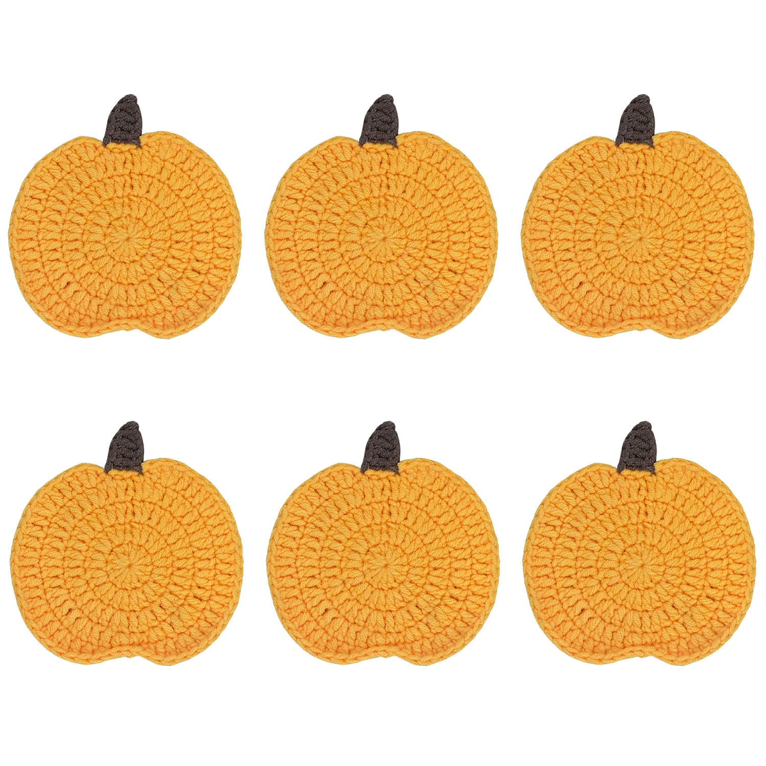 π Crochet Pumpkin Coasters, Decorative and Surface-Protecting, Perfect for Halloween, Desk Bars, Holiday Parties, Thanksgiving, Fall Themed Decor