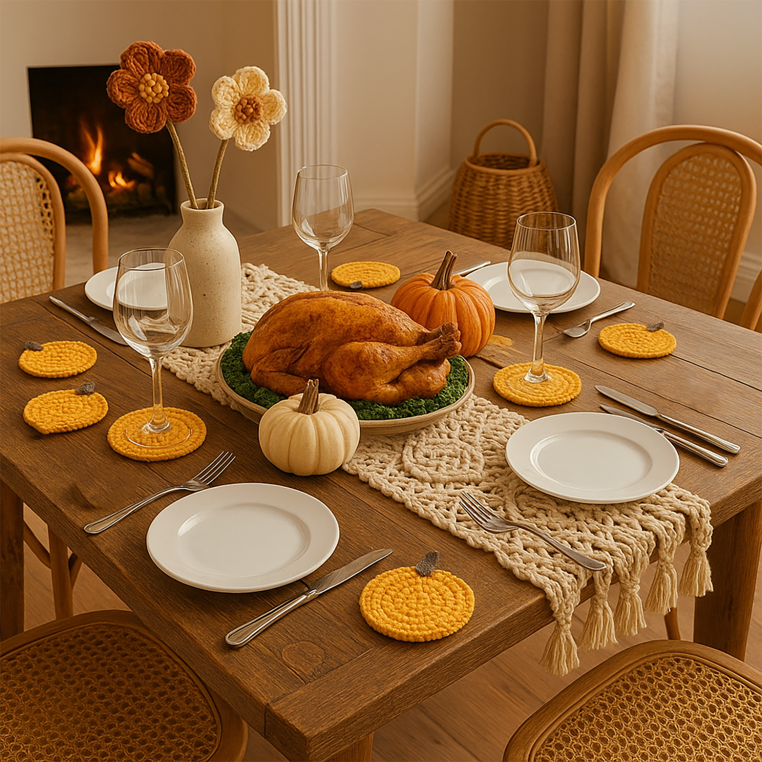 π Protect Your Surfaces: Soft yet durable, these woven coasters guard your tables and countertops from hot or cold drinks while adding seasonal style.
