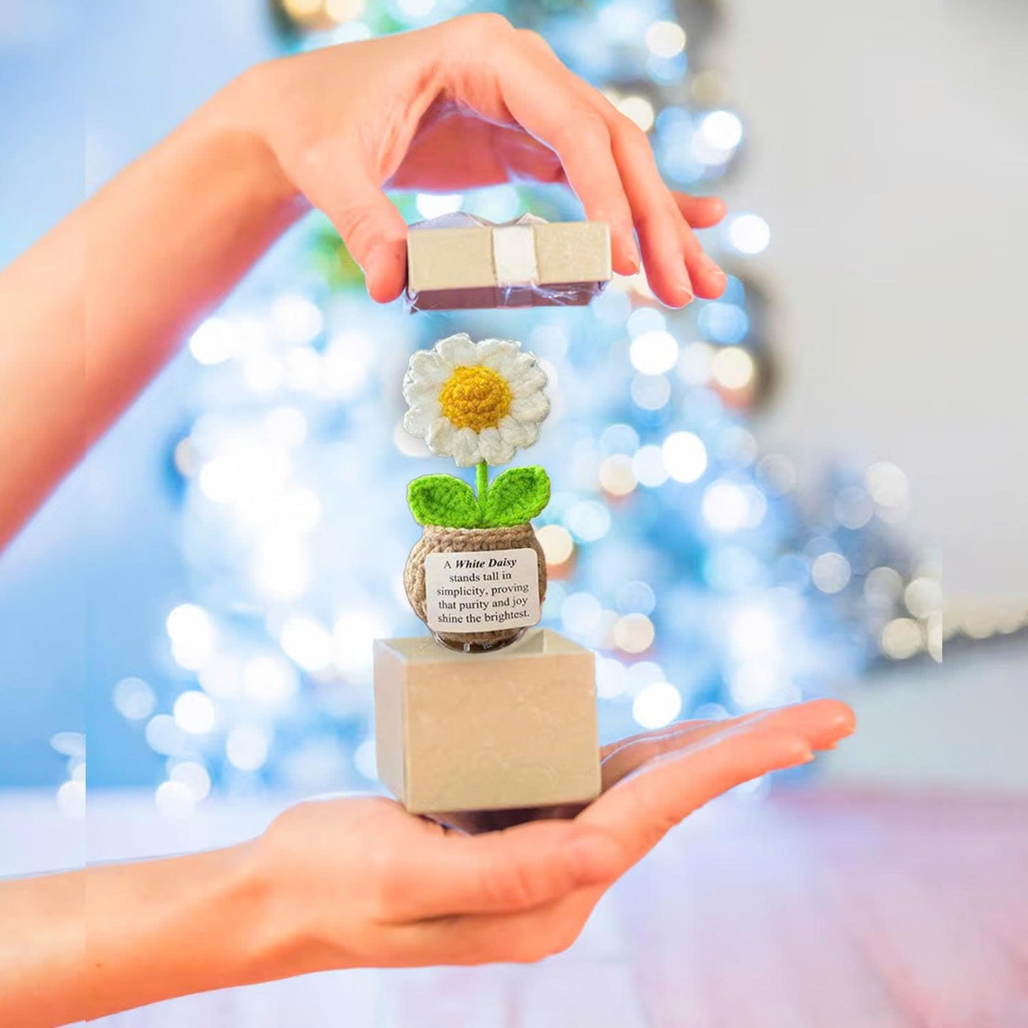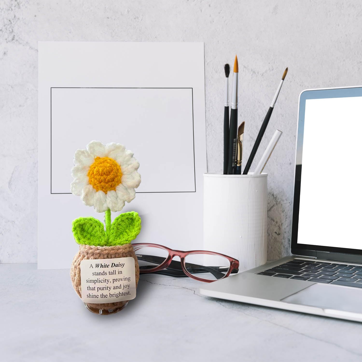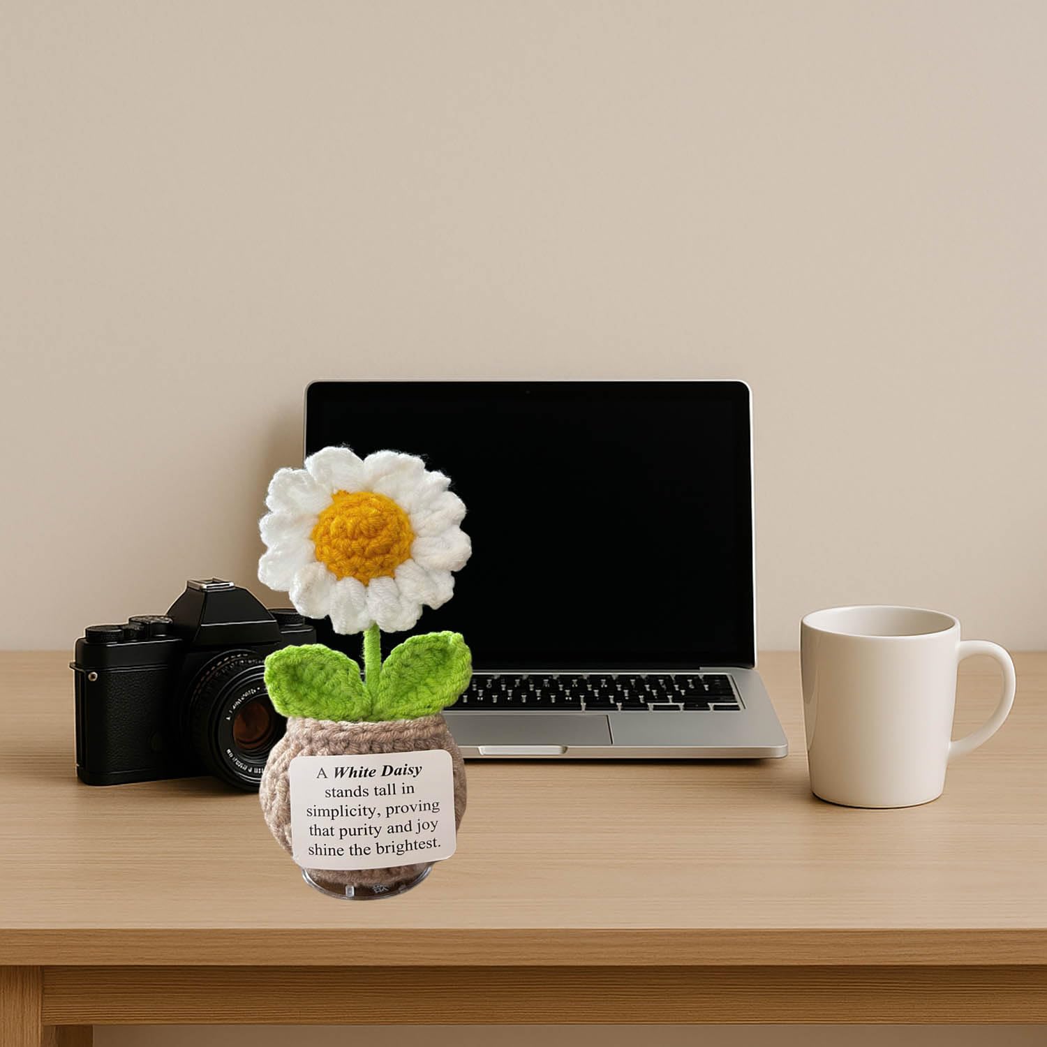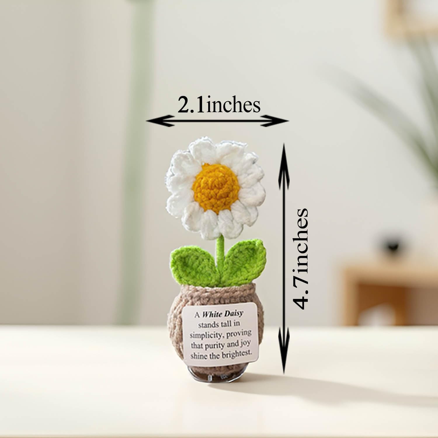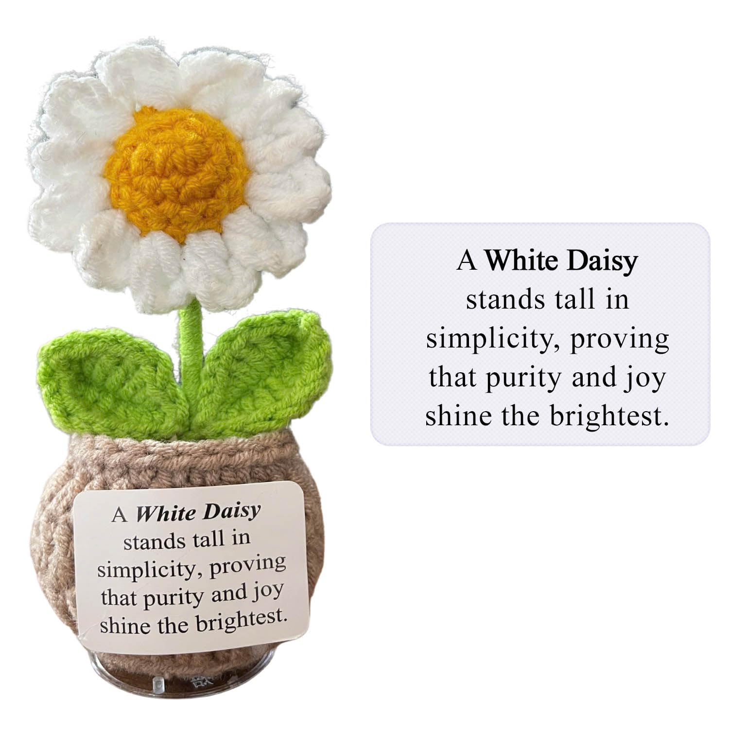 🌞 Handmade Crochet Flower with Support Card for Inspirational Gift with Encouragement Card for Office, Desk Decor or Home Decoration (Daisy)