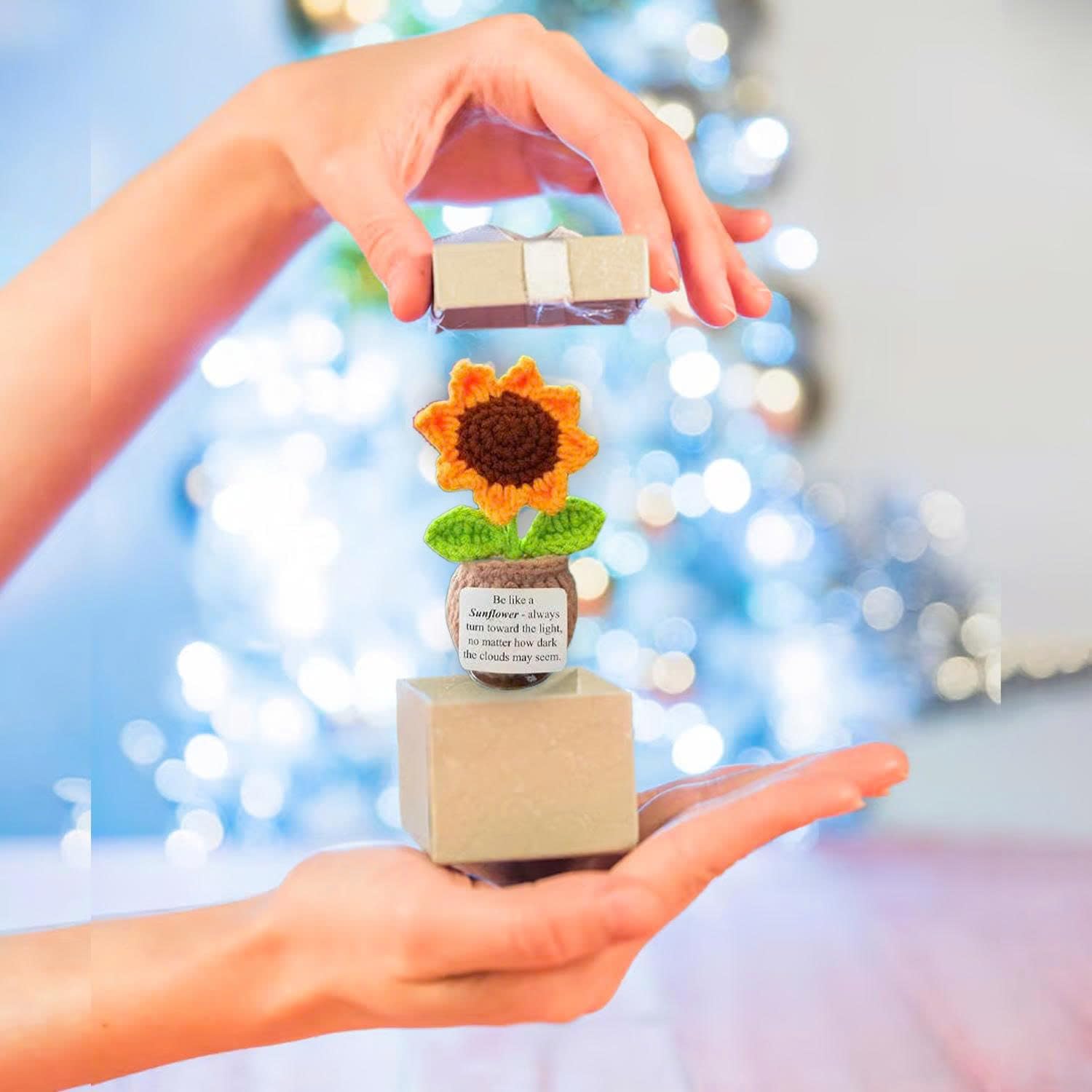 🌞 Handmade Crochet Flower with Support Card for Inspirational Gift with Encouragement Card for Office, Desk Decor or Home Decoration (Sunflower)