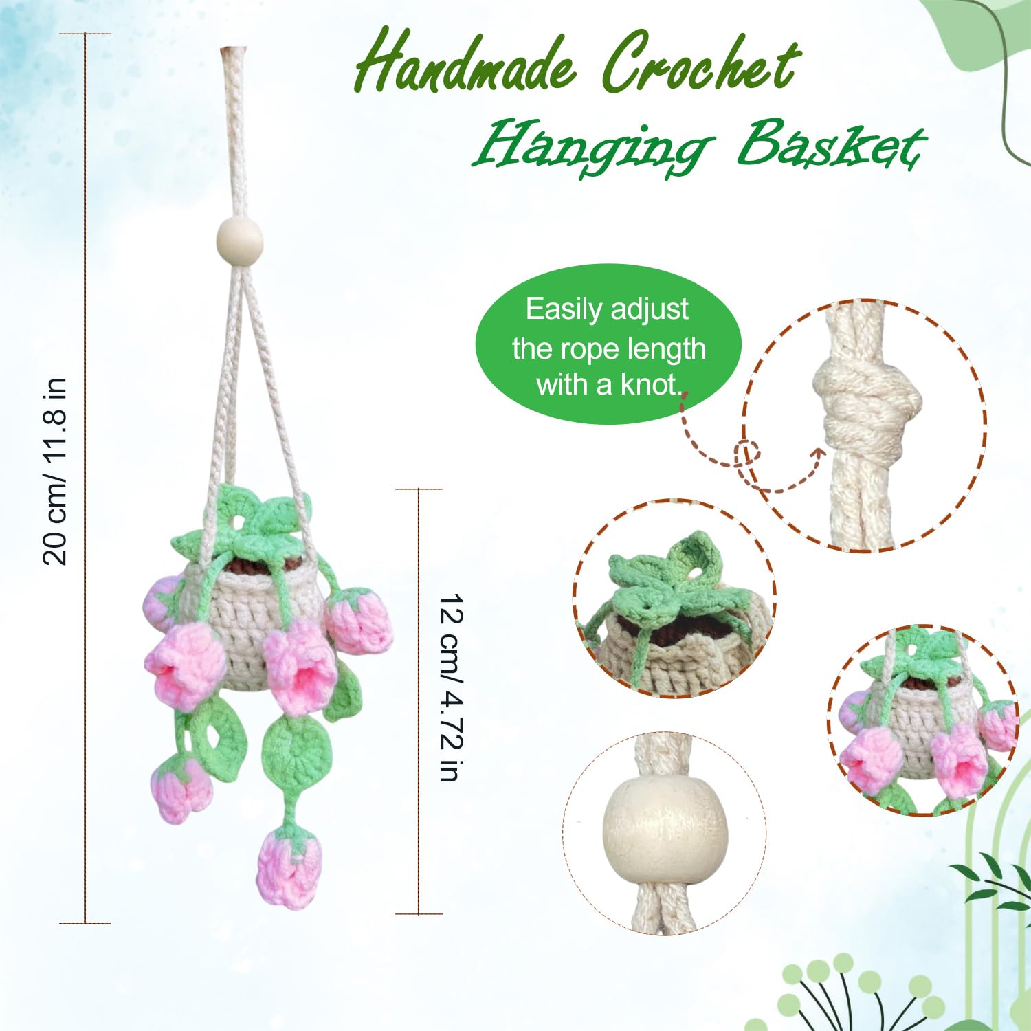 🌺 Multipurpose Use – Not just for your car! Hang it in your bedroom, office, or workspace as a crochet hanging ornament or mini plant charm.