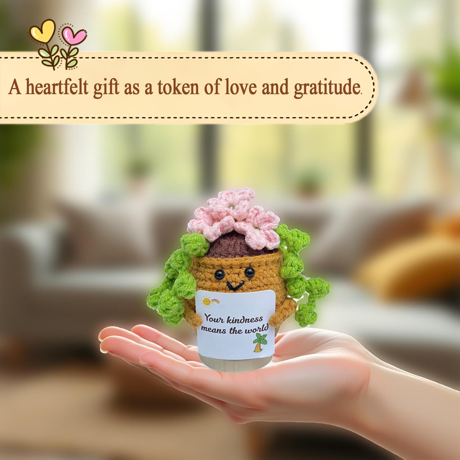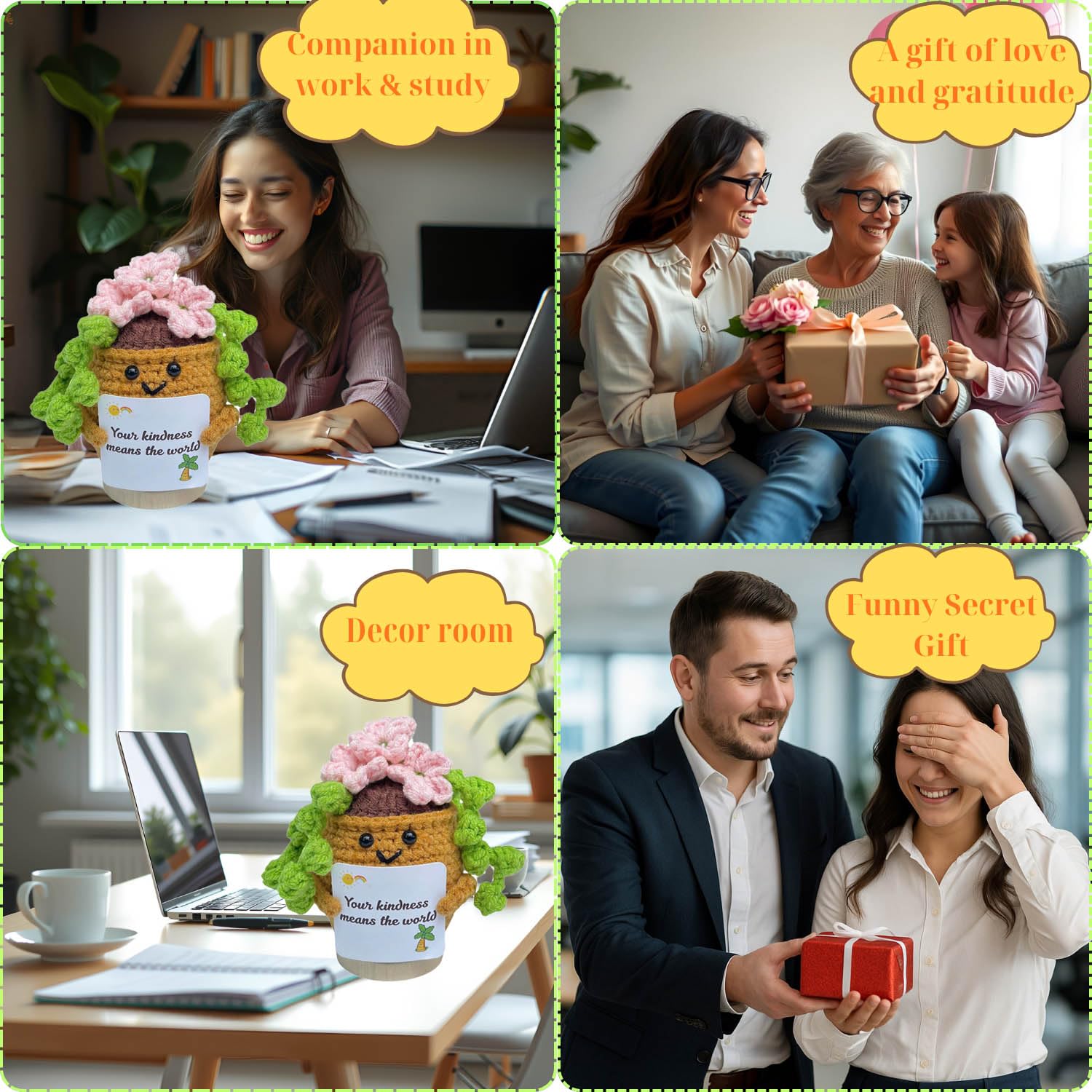 🌞 Handmade Crochet Positive Gifts for Women, Friend | Knitted Emotional Encouragement Gift Like Cactus, Plant, Suculent, Plush for Feel Beter, Well Support, Desk Home Office Decor (Sunflower)