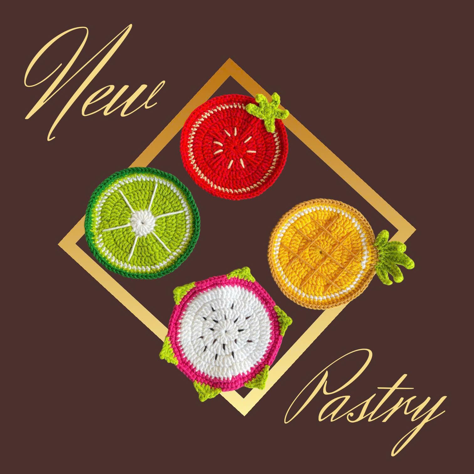 🍓 Handmade Crochet Coasters – Set of 4 unique fruit & flower–inspired designs, perfect as funny drink coasters or cute housewarming gifts.